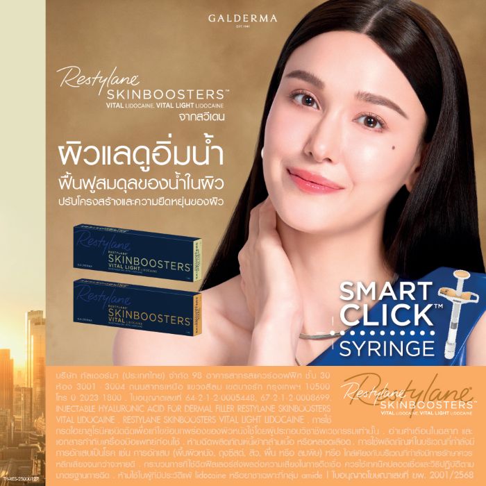 ภก. ณัฐเดช อังวัฒนพาณิช ผู้จัดการฝ่ายการตลาด กลุ่มธุรกิจความงาม ประเทศไทย บริษัท กัลเดอร์มา (ประเทศไทย) จำกัด กล่าวว่า “กัลเดอร์มา เชื่อว่าการดูแลด้านความงามเป็นการเดินทางระยะยาวของแต่ละคน ไม่ใช่แค่ทรีตเมนต์เพียงครั้งเดียว แต่คือการดูแลผิวและความมั่นใจอย่างต่อเนื่องร่วมกับแพทย์ที่มีความเชี่ยวชาญ เพื่อให้ทุกคนได้ดูแลผิวอย่างสมดุลและยั่งยืน เป็นตัวเองในเวอร์ชันที่ดียิ่งขึ้น ตามแนวคิด Aesthetic Lives ล่าสุดจึงนำเทคโนโลยีความงามมาผสานกับพลังของเสียงดนตรี สร้างสรรค์เป็นแคมเปญ ‘#CLICKบูสต์ผิว’ เพื่อตอกย้ำความเป็นผู้นำกลุ่มผลิตภัณฑ์ SKINBOOSTERS ในประเทศไทย เปิดมุมมองใหม่ให้เรื่องของการดูแลผิวกลายเป็นเรื่องสนุก เข้าใจง่าย และเข้าถึงได้มากขึ้น พร้อมช่วยให้ทุกคนจดจำเอกลักษณ์ของ Restylane SKINBOOSTERS™ ซึ่งเป็นผลิตภัณฑ์สารเติมเต็ม (Hyaluronic Acid Dermal Filler) ประเภทที่มีส่วนช่วยเพิ่มความชุ่มชื้นและกักเก็บน้ำให้แก่ชั้นผิว ส่งผลให้ผิวแลดูเรียบเนียนและอิ่มน้ำอย่างเป็นธรรมชาติ รวมถึงช่วยปรับสภาพผิว จึงเหมาะสำหรับการฟื้นบำรุงผิวที่ดูอ่อนล้า พร้อมรู้สึกมั่นใจกับผิวสุขภาพดีในแบบของตัวเอง”