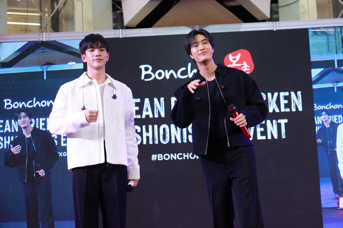ด้วยความร่าเริงสนุกสนาน และภาพลักษณ์แบบ GEN Z หรือกลุ่มคนรุ่นใหม่กับไลฟ์สไตล์ที่เข้าถึงง่าย เป็นกันเอง สอดคล้องไปกับความเป็น Korean Fried Chicken Fashionistas ของบอนชอนแบรนด์ไก่ทอดเกาหลีที่มีทั้งความทันสมัย โดดเด่นเป็นเอกลักษณ์ไม่ซ้ำใคร พร้อมตอกย้ำเมนูต้นตำรับไก่ทอดเกาหลีที่ได้รับความนิยมจนต้องเปิดตัวเมนู The Whole Chicken ที่มาพร้อมความใหญ่ กรอบ อร่อย แบบคูณ 2 ให้ทุกคนได้เพลิดเพลินและฟินไปกับสองหนุ่มอีกด้วย