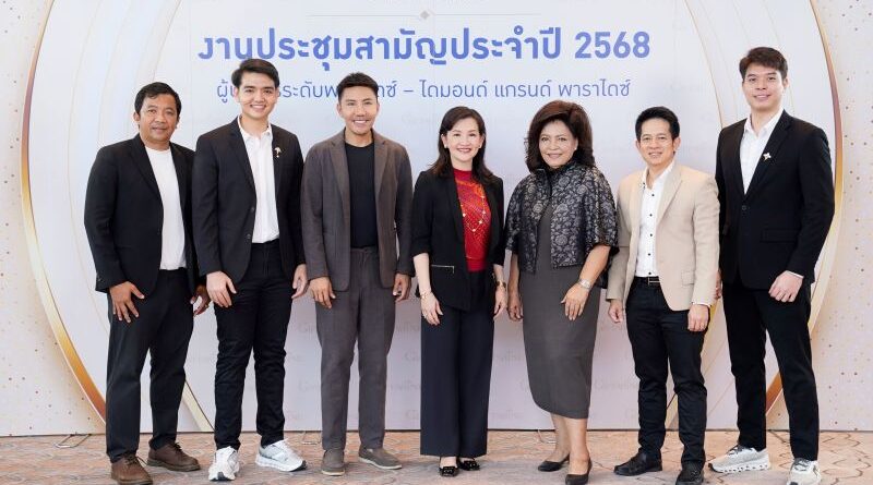 บริษัท กิฟฟารีน สกายไลน์ ยูนิตี้ จำกัด จัดงานประชุมสามัญประจำปี 2568 แถลงนโยบายและกลยุทธ์ทางการตลาด นำโดย พญ.นลินี ไพบูลย์ ประธานกรรมการ คุณพงศ์พสุ อุณาพรหม รองกรรมการผู้จัดการ และประธานเจ้าหน้าที่เพื่อการเติบโตองค์กร คุณเอกกมล บุญญาภิสันท์ ผู้อำนวยการสายงานการตลาด และผู้ช่วยผู้บริหารเพื่อการเติบโตองค์กร คุณศุภร ธัญวาส ผู้บริหารระดับไดมอนด์ แกรนด์ พาราไดซ์ และผู้บริหารระดับสูง New Gen เข้าร่วมงาน