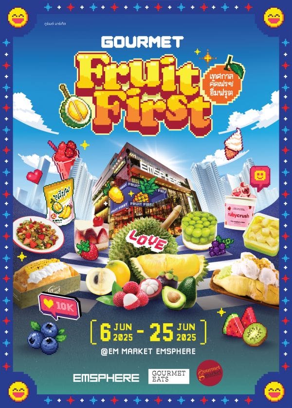 ร่วมสนับสนุนอุตสาหกรรมผลไม้ ซอฟต์พาวเวอร์ไทย กับผลไม้เกรดพรีเมียม “คัดเฉพาะเพื่อคุณ” และเต็มอิ่มไปกับหลากหลายเมนู อร่อยแปรรูปจากผลไม้ได้ในงาน “Gourmet Fruit First (กูร์เมต์ ฟรุต เฟิร์ตส์) เทศกาลคัดเฟรชอิ่มฟรุต 2025” ที่ เอ็ม มาร์เก็ต ชั้น G เอ็มสเฟียร์ ตั้งแต่วันนี้ – 25 มิถุนายน 2568 ติดตามรายละเอียดเพิ่มเติมได้ที่ Facebook : Gourmet Market Thailand และ IG : gourmetmarket