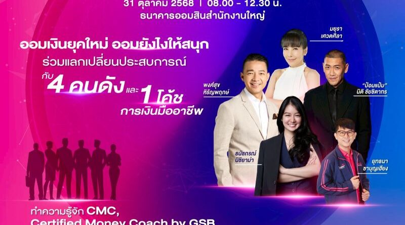 อย่าพลาด! โอกาสเติมความรู้ด้านการออมในยุคดิจิทัล แล้วพบกันในวันที่ 31 ตุลาคม 2568 เวลา 08.00 – 12.30 น. ณ ธนาคารออมสิน สำนักงานใหญ่ มาค้นพบแรงบันดาลใจดี ๆ ทริคการออมที่ตอบโจทย์ทุกช่วงวัย พร้อมร่วมสนุกกับกิจกรรมสุดพิเศษ และรับของที่ระลึกสุดเอ็กซ์คลูซีฟกลับบ้าน ติดตามรายละเอียดเพิ่มเติมได้ที่เพจเฟซบุ๊ก GSB Society