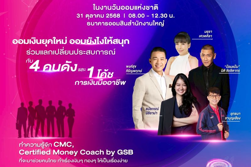 ธนาคารออมสิน ขอเชิญร่วมงาน GSB SAVINGS FORUM 2025 ภายใต้แนวคิด “AI & AOM ออมยุคใหม่ สร้างสังคมไทยให้ยั่งยืน” ในวาระวันออมแห่งชาติ 2568 ชวนนักออมทุกเพศทุกวัยก้าวเข้าสู่โลกการออมในยุคดิจิทัล ด้วยกิจกรรมมากมาย อาทิ มินิทอล์กเคล็ดลับการออมจากเหล่าคนดัง การแข่งขันประกวด “กระปุกออมสินแห่งโลกยุคดิจิทัล” ในวันอังคารที่ 31 ตุลาคม 2568 เวลา 08.00 – 12.30 น. ณ ธนาคารออมสินสำนักงานใหญ่ พร้อมเปิดให้ลงทะเบียนจองสิทธิ์ฝากเงินเพื่อรับกระปุกออมสินเนื่องในวันออมแห่งชาติ รุ่น “แสงแห่งการออม” ตั้งแต่ 27-30 ตุลาคม 2568