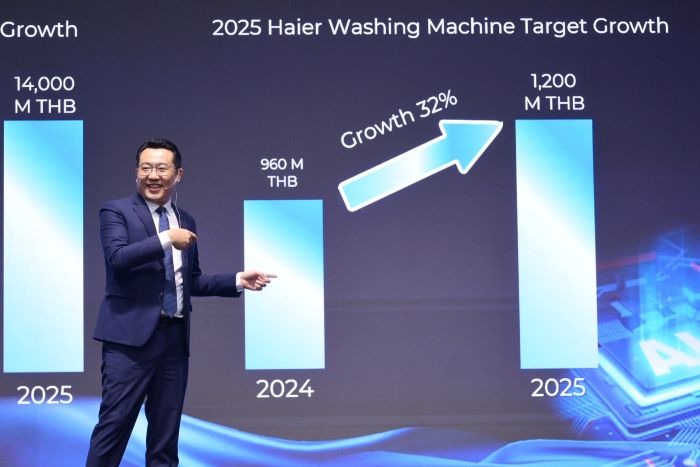 มร. ต่ง เจี้ยนผิง ประธานกรรมการบริหาร บริษัท ไฮเออร์ อีเลคทริคอล แอพพลายแอนซ์ (ประเทศไทย) จำกัด กล่าวว่า “ตลาดเครื่องซักผ้าในประเทศไทยมีมูลค่ากว่า 1.6 หมื่นล้านบาท ในปี 2568 มีการเติบโตที่น่าสนใจราว 7% เมื่อเทียบกับปี 2567 โดยเครื่องซักผ้าไฮเออร์ตั้งเป้าได้ส่วนแบ่งทางการตลาด 15% ในปี 2568 แม้จะมีความท้าทายจากปัจจัยด้านเศรษฐกิจ แต่กลุ่มลูกค้าที่มีกำลังซื้อสูงยังคงเติบโตต่อเนื่อง อีกทั้งปัจจัยด้านการฟื้นตัวจากตลาดอสังหาริมทรัพย์ที่มีแนวโน้มปรับตัวดีทั้งในมิติของการตกแต่ง ซ่อมแซม และการปรับปรุงที่อยู่อาศัย ซึ่งเป็นปัจจัยสำคัญที่ส่งผลต่อการตัดสินใจซื้อเครื่องใช้ไฟฟ้าในครัวเรือน โดยยังรวมไปถึงพฤติกรรมผู้บริโภคยุคใหม่ที่มองหา “เครื่องใช้ไฟฟ้าที่ให้มากกว่าความสะดวก” โดยเน้นเทคโนโลยีอัจฉริยะ ดีไซน์ที่สอดคล้องกับไลฟ์สไตล์ และประสบการณ์การใช้งานที่ตอบโจทย์ชีวิตประจำวัน ทั้งนี้หนึ่งในเทรนด์สำคัญคือการเติบโตของกลุ่มสินค้าในบ้านที่ผสาน AI และฟีเจอร์อัตโนมัติที่ถูกนำมาใช้กับเครื่องซักผ้าและเครื่องอบผ้า ซึ่งสะท้อนความต้องการสินค้าที่สามารถจัดการงานบ้านได้อย่างชาญฉลาด ประหยัดเวลา และถนอมเสื้อผ้าได้อย่างมีประสิทธิภาพ