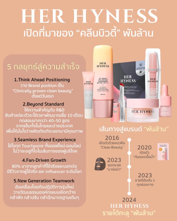 5 กลยุทธ์ที่ HER HYNESS ใช้สู่แบรนด์คลีนบิวตี้ระดับพันล้านมาตรฐานระดับโลกฝีมือคนไทย ได้แก่