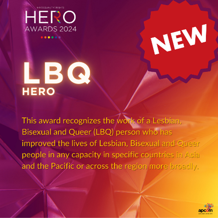 มูลนิธิแอ็พคอม (APCOM Foundation) ร่วมกับสามภาคีระดับภูมิภาค APN+, APTN และ ILGA Asia มีความภูมิใจอย่างยิ่งที่จะประชาสัมพันธ์ให้สาธารณชนร่วมเสนอชื่อผู้เข้าชิงรางวัลฮีโร่ อวอร์ด ประจำปี 2024 สำหรับผู้ที่สนใจสามารถเสนอชื่อเพื่อเป็นเกียรติให้แก่ผู้ที่ทำงานเพื่อชุมชนผู้ที่มีความหลากหลายทางเพศ (LGBTQI) และ ทำงานด้านเชื้อเอชไอวี ในประเทศและทั่วภูมิภาคเอเชียแปซิฟิกได้แล้ววันนี้