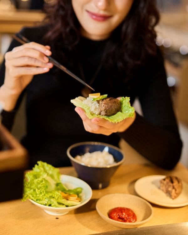 รสชาติที่เป็นเอกลักษณ์มาพร้อมคอนเซปต์ที่ไม่เหมือนใคร “บดใหม่ ย่างใหม่ หุงใหม่ ทุกคำ!” การันตีเนื้อวัวคุณภาพนำเข้าจากประเทศญี่ปุ่น 100% บดใหม่ทุกเช้าในห้องที่ควบคุมอุณหภูมิอย่างเข้มงวด และยังใช้เทคนิคการตบเนื้อด้วยมืออย่างรวดเร็ว นำมาย่างใหม่บนเตาถ่าน สร้างกลิ่นหอมยั่วยวนอันเป็นเอกลักษณ์ พร้อมเสียงเนื้อย่างบนเตาร้อน ๆ ช่วยเติมความตื่นเต้นให้มื้ออาหาร และยังให้ลูกค้าได้รสสัมผัสเนื้อที่อร่อยที่สุด “ทุกคำ!”