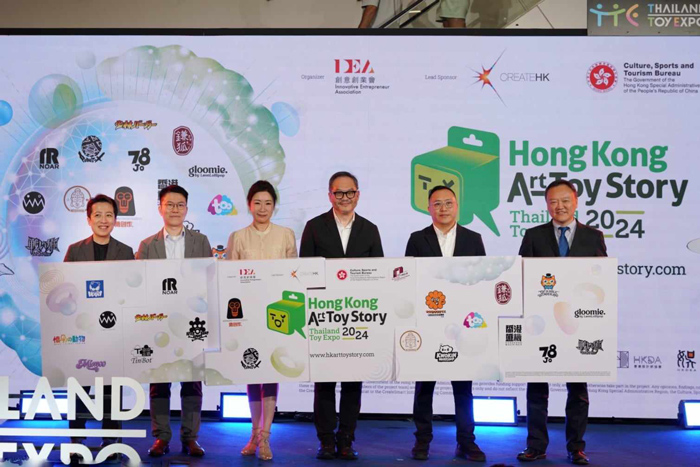 Hong Kong Art Toy Story 2024 จัดขึ้นภายใต้ความร่วมมือระหว่างสมาคมผู้ประกอบการนวัตกรรม (IEA) นำโดย Cherrie Chong, Chairman of IEA และ Create Hong Kong (CreateHK) นำโดย Victor Tsang, Head of Create Hong Kong ได้รับการสนับสนุนอย่างเป็นทางการจากรัฐบาลเขตบริหารพิเศษฮ่องกง ภายใต้โครงการ “ส่งเสริมงานอาร์ตทอยของดีไซเนอร์ฮ่องกง” ที่ร่วมกันคัดเลือกศิลปินอาร์ตทอย 20 คนที่มีผลงานโดดเด่นและมีเอกลักษณ์เฉพาะตัว ประกอบด้วย 3 ศิลปินอาร์ตทอยชื่อดังอย่าง Ryan Lee, Rainbo และ Winson Ma ร่วมกับ 17 ศิลปินรุ่นใหม่มาแรง ได้แก่ Aaron Lau, Anna Chan, Cheng Ki KI, Gilbert Yam, Gino Lai, Joseph Tang, Keith Li, Leo Pak, LeonLollipop, Leung Kwok Kin, Lock Lai, Ricky Chan, Sunny Tam, Tomm Wong, Tony Leung, Felix Ip และ Mickey Mic