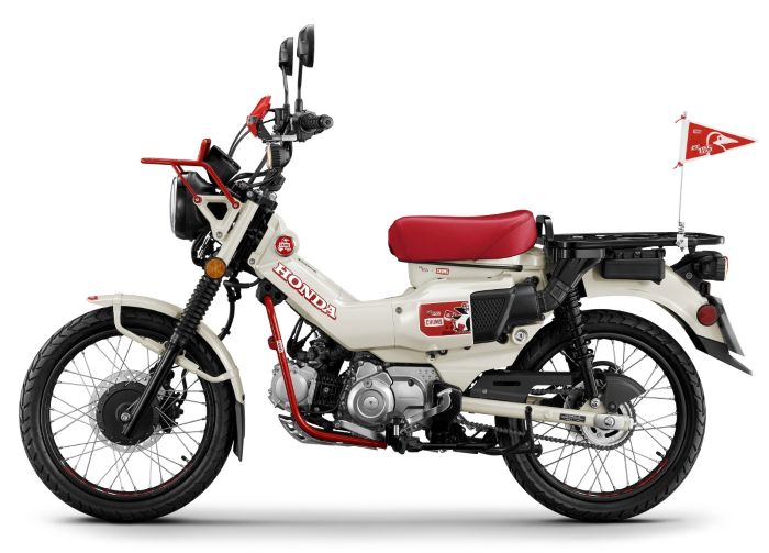 สำหรับ New Honda CT125 CHUMS Limited Edition ออกแบบมาเพื่อตอบโจทย์สายเทรลโดยเฉพาะ ด้วยแร็คไฟหน้าสีแดงสดใส กราฟิกรอยเท้าหมี Grizzly สุดน่ารัก มาพร้อมเบาะหนังสีแดงสดที่เข้าชุดกับตัวรถสีขาวอย่างลงตัว เสริมความพิเศษด้วยโลโก้ CHUMS และชุดการ์ดแฮนด์ Barkbusters ที่พร้อมลุยได้ทุกเส้นทาง เปิดตัวพร้อมราคาแนะนำ 98,900 บาท โดยผู้ที่ได้ครอบครองยังได้รับ Camp Gadget พรีเมียมเซ็ต อาทิ เก้าอี้แคมป์, แก้วเก็บอุณหภูมิ CHUMS, เสื้อยืดลิมิเต็ด และหมวกกันน็อกเข้าเซ็ต พร้อม Serial Number เฉพาะไม่ซ้ำใคร
