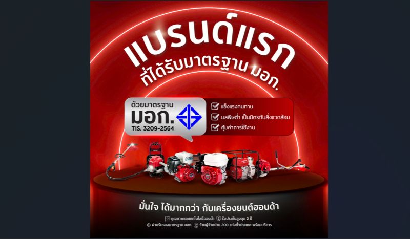 ไทยฮอนด้า ผู้ผลิตและจัดจำหน่ายรถจักรยานยนต์และเครื่องยนต์อเนกประสงค์ฮอนด้าในประเทศไทย ตอกย้ำความเป็นผู้นำด้านนวัตกรรมและคุณภาพ ด้วยการเป็น แบรนด์แรกในประเทศไทย ที่ได้รับการรับรอง มาตรฐานผลิตภัณฑ์อุตสาหกรรม (มอก.) รหัส TIS.3209-2564 จากสำนักงานมาตรฐานผลิตภัณฑ์อุตสาหกรรม (สมอ.) สำหรับเครื่องยนต์อเนกประสงค์ โดยเป็นก้าวสำคัญในการยกระดับความเชื่อมั่นของผู้บริโภคทั้งในด้านคุณภาพ ประสิทธิภาพ และความปลอดภัย