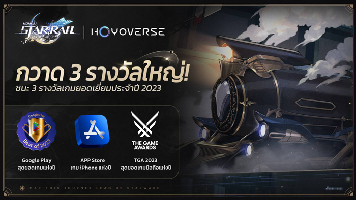 ปรากฏการณ์ครั้งแรกในวงการเกมมือถือ ค่าย HoYoverse ทำสถิติใหม่! เกม Honkai: Star Rail คว้า 3 รางวัลใหญ่สำเร็จภายในปีแรกที่เปิดตัว ทั้งรางวัล “สุดยอดเกมแห่งปี” จาก Google Play รางวัล “เกม iPhone แห่งปี” จาก App Store และรางวัล “BEST MOBILE GAME” จาก TGA (The Game Awards) 2023 ด้วยผลโหวตอันล้นหลามจากแฟนเกม ตามรอยเกมรุ่นพี่อย่าง Genshin Impact ที่เคยได้รางวัล Player’s Voice Award จาก TGA 2022 และ Best Mobile Game จาก TGA 2021
