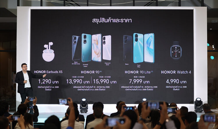 ทั้งนี้ HONOR 90 Series จะวางจำหน่ายอย่างเป็นทางการในวันที่ 2 กันยายน 2566 เป็นต้นไปที่ช่องทางออนไลน์ และ HONOR Official Store รวมถึงร้านค้าตัวแทนจำหน่าย HONOR ที่ร่วมรายการทั่วประเทศ และ HONOR Experience Store ที่ศูนย์การค้าเซ็นทรัล พระราม 2 และศูนย์การค้าเอ็มบีเค เซ็นเตอร์ สามารถติดตามรายละเอียดและสอบถามข้อมูลเพิ่มเติมได้ที่ Facebook: HONOR Thailand, Instagram: HONOR Thailand
