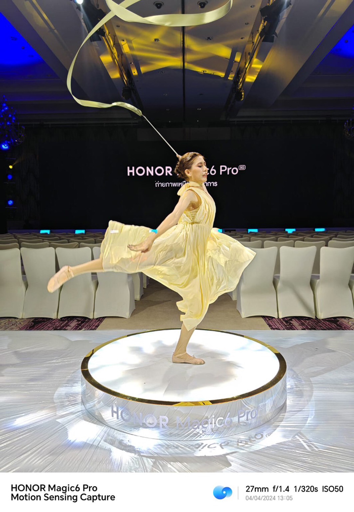 สำหรับคุณสมบัติที่โดดเด่นอย่าง Periscope Telephoto ความละเอียด 180 ล้านพิกเซล ทำให้ผู้ใช้ถ่ายภาพได้แบบมืออาชีพ นอกจากนี้ยังมีเซ็นเซอร์เทเลโฟโต้ขนาดใหญ่ 1/1.49 นิ้ว ช่วยให้มั่นใจได้ว่าทุกช็อตที่ซูมเข้าจะจับภาพวัตถุที่อยู่ไกลออกไปด้วยความคมชัด มีรูรับแสงกว้าง f/2.6 ที่ช่วยให้ถ่ายภาพได้ทั้งกลางวันและกลางคืนที่มีแสงน้อย อีกทั้งกล้องเทเลโฟโต้ยังผสานนวัตกรรมเทคโนโลยีการซูมแบบอินเซนเซอร์ ที่รองรับออปติคอลซูม 2.5 เท่า การซูมแบบ Lossless 5 เท่า และการซูมแบบดิจิตอล 100 เท่า ทำให้ถ่ายภาพระยะไกลได้มากขึ้น รวมถึงยังช่วยเพิ่มอรรถรสในการรับชมการแข่งขันกีฬาแบบสดๆ ได้อย่างใกล้ชิดมากขึ้นด้วย นากจากนี้ HONOR Magic6 Pro ได้มีการขยายความสามารถในด้านการถ่ายภาพกีฬาและปรับปรุงประสิทธิภาพในสภาวะแสงน้อย โดยเซ็นเซอร์กล้องสามารถรวมพิกเซลจับแสงถึง 16 พิกเซลให้เป็นพิกเซลที่ใหญ่ขึ้น ผลลัพธ์ที่ได้จะเทียบเท่ากับขนาดพิกเซล 2.24μm6 ซึ่งเทคโนโลยีนี้ช่วยให้กล้องจับภาพได้สว่างและทำให้ภาพสดใส มีชีวิตชีวาแม้ในสภาวะที่มีแสงน้อย