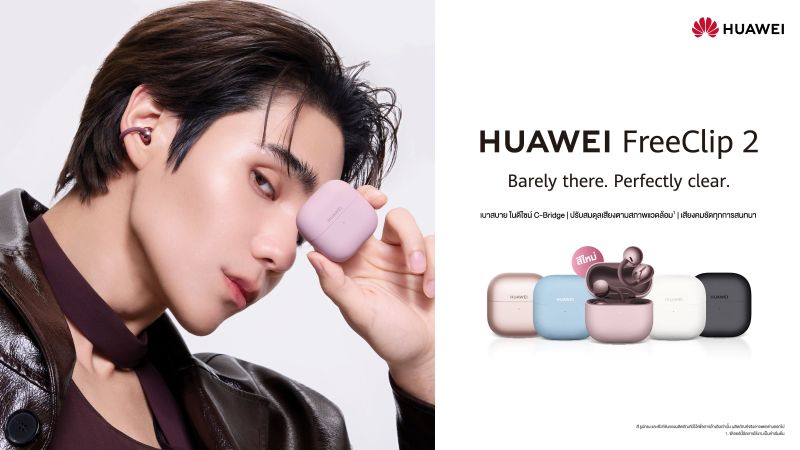 HUAWEI FreeClip 2 วางจำหน่ายสีใหม่! สีม่วง Berry Purple พร้อมกับสีฟ้า สีดำ สีขาว และสีโรสโกลด์ โปรโมชันพิเศษ เมื่อซื้อระหว่างวันที่ 4 เมษายน 2569 – 4 พฤษภาคม 2569 ราคาพิเศษเพียง 4,990 บาท จากราคาปกติ 5,990 บาท พร้อมรับฟรี HUAWEI 1 Year Loss Care Warranty มูลค่า 499 บาท (รับประกันหูฟังหาย 1 ข้าง สามารถซื้อข้างเดียวได้ในราคาลด 50% เคลมได้ 1 ครั้งใน 1 ปี) สามารถสั่งซื้อได้ที่ HUAWEI Experience Store และร้านค้าตัวแทนจำหน่ายที่ร่วมรายการ รวมถึงช่องทางออนไลน์บน HUAWEI Store, Lazada, Shopee และ TikTok Shop