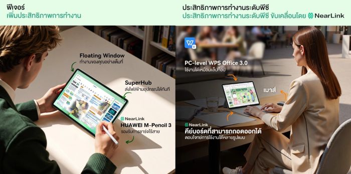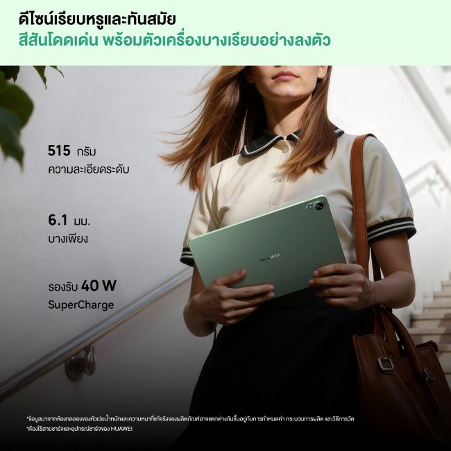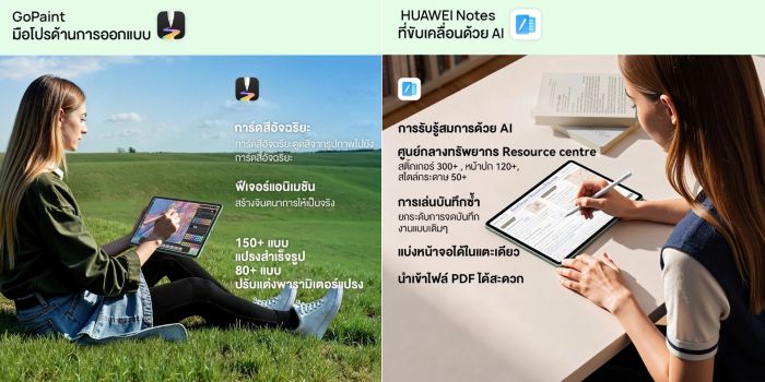 มีแอปพลิเคชัน HUAWEI Notes (พร้อม AI จดจำลายมือและสมการ) และ GoPaint (แอปวาดภาพจากหัวเว่ย พร้อมฟีเจอร์อัจฉริยะ เช่น การดึงสี และแอนิเมชัน) ทั้งหมดนี้บรรจุในดีไซน์ Unibody โลหะบาง 6.1 มม. หนัก 515 กรัม พร้อมแบตเตอรี่ 8800 mAh, ระบบเสียง Histen 9.0 และกล้อง 8MP/13MP ตอบโจทย์ทุกสไตล์การทำงาน การเรียนรู้ และการสร้างสรรค์ของคนรุ่นใหม่