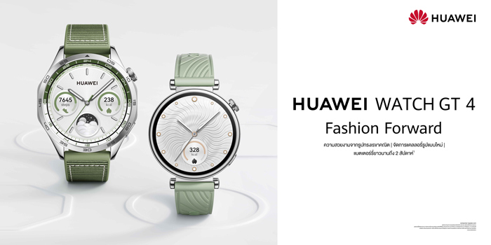 นอกจากนี้ยังเปิดวางจำหน่าย HUAWEI WATCH GT 4 41mm สีเขียวใหม่ ที่ได้รับแรงบันดาลใจจากโทนสีเขียวในฤดูใบไม้ผลิและลวดลายที่สายนาฬิกามีพื้นผิวเอฟเฟ็กต์ของใบไม้ให้ความรู้สึกถึงความละเอียดอ่อนแบบมีเอกลักษณ์เฉพาะตัว พร้อมฟังก์ชั่นการทำงานรองรับการแสดงผลแบบ Always-on Display ให้การอ่านค่าคมชัด รองรับการแจ้งเตือนและการใช้งานภาษาไทย นี่คือโค้ชคู่ใจในการออกกำลังกายกว่า 100 โหมด ตรวจวัดค่าแม่นยำพร้อมระบบติดตามตำแหน่ง GNSS 5 สัญญาณดาวเทียม มาพร้อมเทคโนโลยี HUAWEI TruSeen 5.5+ พร้อมติดตามค่าสำคัญระหว่างการออกกำลังกายและนอนหลับ ใช้งานได้สูงสุด 7 วัน[6]