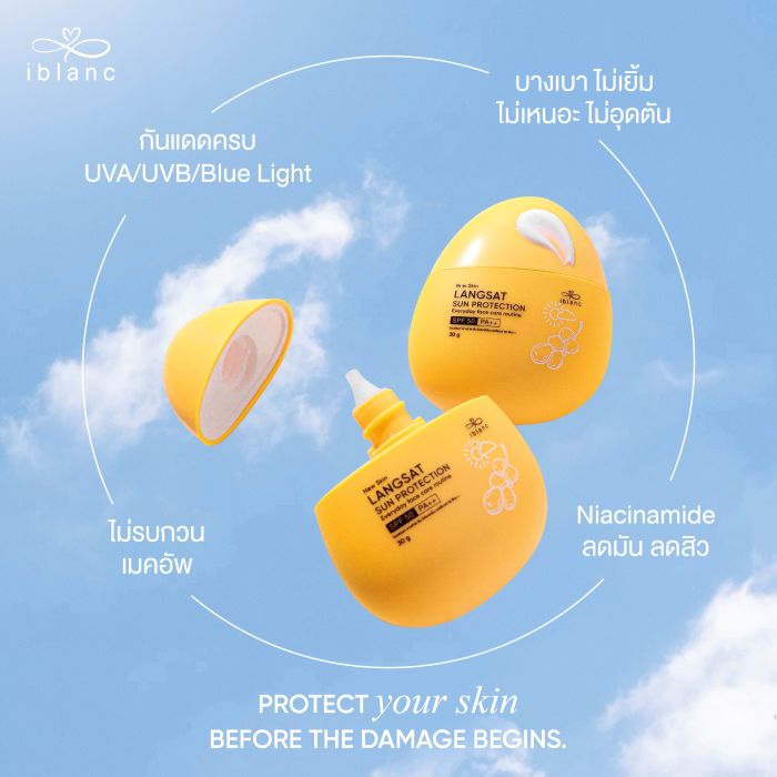 iblanc Langsat Sun Protection SPF50 PA++ กันแดดยุคใหม่ เข้าใจทุกผิว เบลอผิว เบลอสิว ไม่อุดตัน