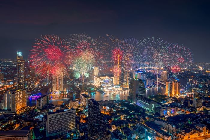 เตรียมพบกับมหาปรากฏการณ์พลุเฉลิมฉลองระดับโลก ตื่นตาตื่นใจกับการแสดงพลุรักษ์โลกบนโค้งน้ำที่สวยที่สุดของแม่น้ำเจ้าพระยากว่า 1,400 เมตร ครอบคลุมรัศมีการชมได้มากกว่า 5 กิโลเมตร ซึ่งในปีนี้ยังมีความพิเศษในด้านเทคนิค เพื่อสร้างมิติใหม่ให้กับการดูพลุในค่ำคืนวันเคานต์ดาวน์ จะได้เห็นพลุสีสันสดใส โทนสีใหม่อย่างสีพาสเทล สีทอง และรูปทรงที่หลากหลายสะดุดตา พลุทรงพัด พลุสายน้ำ หรือพลุที่กระจายตัวราวกับดอกเบญจมาศ บนฉากหลังของโค้งน้ำเจ้าพระยาที่งดงามที่สุด