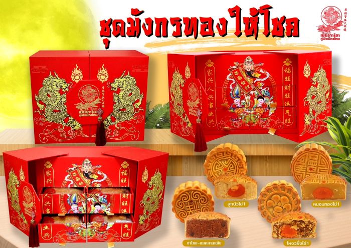 นอกจากนี้ ยังมี Lava Custard Mooncake ไส้ลาวาเยิ้มๆ ที่การันตีความอร่อยระดับโลกจาก MX Cakes & Bakery (เอ็มเอกซ์ เค้กแอนด์เบเกอรี่) และความหลากหลายที่ชวนให้ค้นหากับ ขนมไหว้พระจันทร์ Hand-crafted จากร้าน Bakery Hut ที่มีไส้ขนมไหว้พระจันทร์ให้เลือกมากที่สุดในไทยกว่า 100 ไส้ ไม่ว่าจะเป็นไส้เมี่ยงคำ หรือไส้แบล็คทรัฟเฟิลแมคคาเดเมียสุดพรีเมียม ปิดท้ายด้วยความคุ้มค่ากับ ขนมไหว้พระจันทร์จากร้านกอกใจ ในชุด “ทรัพย์อนันต์” ที่รวมไส้สุดคลาสสิกไว้ครบครัน