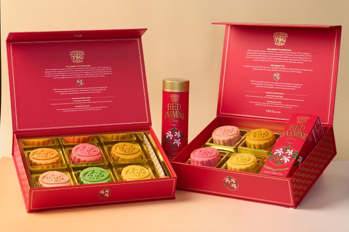 ด้าน “TWG Tea” ชั้น G แบรนด์ชาสุดหรู รังสรรค์ขนมไหว้พระจันทร์รสชาติใหม่จากชาคุณภาพมาให้ลองลิ้มชิมรสถึง 6 รสชาติ ได้แก่ Jade: ไส้ Matcha Tea, Miraculous: ไส้ส้มแมนดารินที่มีส่วนผสมของ Miraculous Mandarin Tea, Éclat: ไส้ส้มยูซุที่มีส่วนผสมของ French Earl Grey, Aurora: ไส้ราสเบอร์รี่และลิ้นจี่ที่มีส่วนผสมของ Bain De RoesTea, Harvest: ไส้คัสตาร์ดไข่ที่มีส่วนผสมของ Vanilla Bourbon Tea และ Constellation: ไส้ทุเรียนและไข่เค็ม ซึ่งมาในแพคเกจสวยงามธีม “Red Jasmine Tea Collection” โดยเลือกซื้อได้ทั้งแบบ Single Box, กล่อง 4 ชิ้น และกล่อง 6 ชิ้น