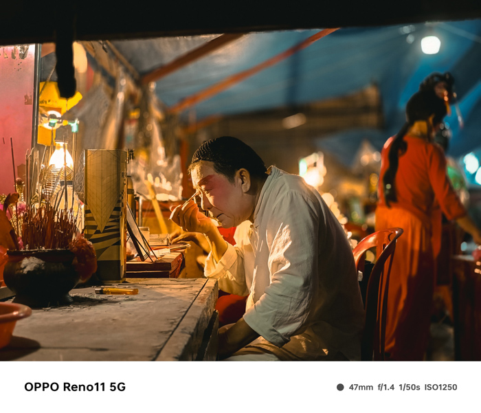 นอกจากนี้ Offtography ยังไปพบกับโรงละครโอเปร่าของจีน และถ่ายภาพหลังเวทีด้วย OPPO Reno11 Series 5G ที่จะเก็บอารมณ์ความรู้สึกของนักแสดงในเทศกาลไว้เป็นอมตะในขณะที่พวกเขาซ้อม แต่งหน้าและแต่งกาย คุณออฟเล่าว่า “ฉันชอบที่ OPPO Reno11 5G ช่วยให้ผมได้ภาพถ่ายแบบเลือกโฟกัสได้ ซึ่งหมายความว่าผมจะได้ด้านหน้าที่ชัดเจน และพื้นหลังเบลอโดยไม่ทำให้ความละเอียดลดลง มอบความสมจริง และถ่ายทอดอารมณ์และความรู้สึกได้หลากหลาย”