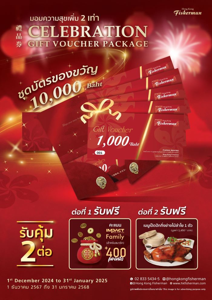 ร้านที่ 2 ร้านอาหารจีน “ฮ่องกง ฟิชเชอร์แมน” ที่สุดของร้านอาหารจีนสไตล์ฮ่องกง ชวนคุณช็อปบัตรกำนัลเงินสด มูลค่า 10,000 บาท (ใบละ 1,000 บาท จำนวน 10 ใบ) มอบความคุ้มค่า 2 ต่อเช่นเดียวกัน ต่อที่ 1 รับฟรี!คะแนน “อิมแพ็คแฟมิลี่” 400 คะแนน สำหรับสมาชิก และต่อที่ 2 รับฟรีเมนูอร่อยสุดอลังการ “เป็ดปักกิ่งย่างไม้ลำไย” ที่หนังกรอบพร้อมน้ำจิ้มแสนอร่อย (มูลค่า 1,450++บาท)