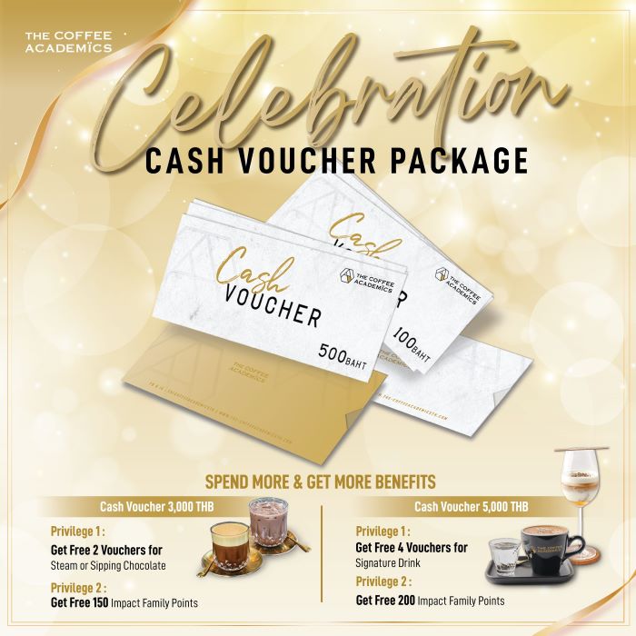 ปิดท้ายด้วยร้านที่ 5 เอาใจคนรักกาแฟกับ “เดอะ คอฟฟี่ อะคาเดมิคส์” ร้านกาแฟสเปเชี่ยลตี้ชั้นนำระดับโลกจากฮ่องกง ขอนำเสนอบัตรกำนัลร้านอาหาร ราคา 3,000 – 5,000 บาท รับฟรี! 2 ต่อ เริ่มที่ บัตรกำนัลเงินสด ราคา 3,000 บาท (ใบละ 100 บาท จำนวน 10 ใบ และ 500 บาท จำนวน 4 ใบ รวมมูลค่า 3,000 บาท) ต่อที่ 1 รับฟรี! เมนูเครื่องดื่มคลาสสิก เมนู Steam และ Sipping Chocolate และต่อที่ 2 พร้อมรับคะแนน “อิมแพ็ค แฟมิลี่” ฟรี! 150 คะแนน และสำหรับบัตรกำนัลเงินสด 5,000 บาท (ใบละ 100 บาท จำนวน 10 ใบ และ 500 บาท จำนวน 8 ใบ รวมมูลค่า 5,000 บาท รับฟรี! 2 ต่อ เช่นเดียวกัน อาทิ 1. รับฟรี บัตรกำนัลเครื่องดื่มเมนูซิกเนเจอร์ จำนวน 4 ใบ และ ต่อที่ 2 . รับคะแนน อิมแพ็คแฟมิลี่ ฟรี! 200 คะแนน