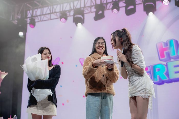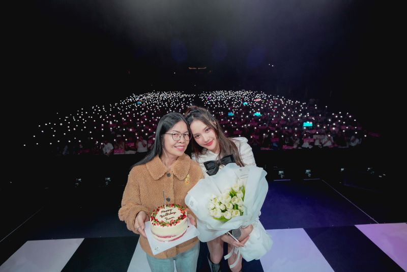 และเซอร์ไพร์สซ้อนเซอร์ไพร์ส เมื่อคู่จิ้นคู่ใจ “เบ็คกี้-รีเบคก้า” เคลียร์คิวด่วน วิ่งมาจากสตูดิโอที่เพิ่งถ่ายงานเสร็จสดๆร้อนๆ หอบดอกไม้สีขาวช่อต่อ โชว์พลังรักบริสุทธิ์ห่วงใยมอบให้บนเวที พร้อมด้วย “แม่นัน” ที่หอบเค้กและคำอวยพรอันเป็นมงคลเพื่อมอบให้กับลูกสาวสุดที่รัก