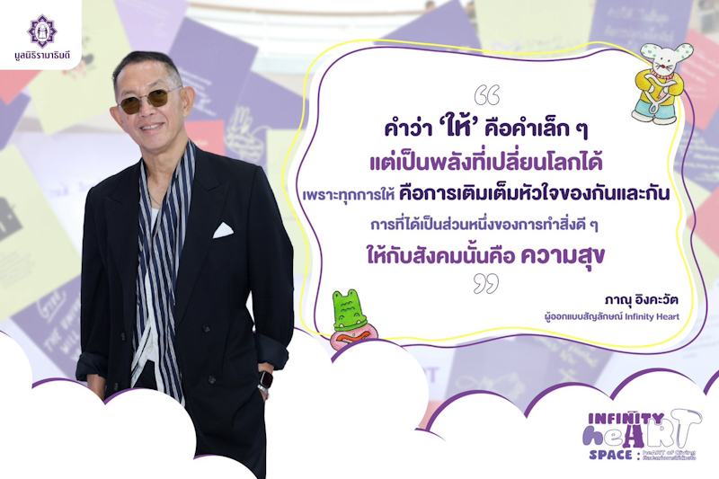 เริ่มจาก ภาณุ อิงคะวัต ผู้ออกแบบสัญลักษณ์ Infinity Heart กล่าวว่า “เส้นทางของผมกับมูลนิธิรามาฯ เริ่มจากการออกแบบของชำรวยเล็ก ๆ น้อย ๆ เพื่อให้มูลนิธิฯ นำไปจำหน่ายหาทุน ต่อมาผมได้ออกแบบ Infinity Heart ขึ้นมา ซึ่งทุกวันนี้กลายเป็นสัญลักษณ์ที่โตไปพร้อมกับทุกการให้ของมูลนิธิฯ ผมเชื่อเสมอว่า คำว่า ‘ให้’ คือคำเล็ก ๆ แต่เป็นพลังที่เปลี่ยนโลกได้ เพราะทุกการให้ คือการเติมเต็มหัวใจของกันและกัน เห็นคนใส่เสื้อที่มีผลงานของเราแล้วรู้สึกดีใจมาก และการที่ได้เป็นส่วนหนึ่งของการทำสิ่งดี ๆ ให้กับสังคมนั้นคือ ความสุข เราทำไปโดยไม่ได้คาดหวังอะไร และรู้สึกดีใจมากที่มูลนิธิรามาธิบดีฯ เป็นที่ที่เปิดโอกาสให้คนได้เข้ามาร่วมกันสร้างสิ่งดี ๆ ให้กับสังคม