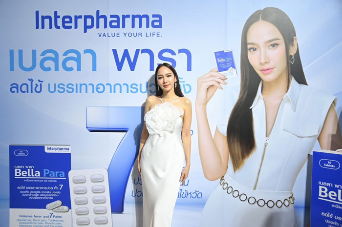 โดย อั้ม-พัชราภา ไชยเชื้อ ในฐานะพรีเซ็นเตอร์ผลิตภัณฑ์ “เบลลา พารา” (Bella Para) กล่าวถึงการร่วมงานกับ Interpharma ว่า “อั้ม มั่นใจในแบรนด์ อินเตอร์ ฟาร์มา ที่พัฒนาผลิตภัณฑ์หลากหลายรายการ ซึ่ง เบลลา พารา (Bella Para) เป็นผลิตภัณฑ์ตัวใหม่ล่าสุดจาก Interpharma ช่วยลดไข้และบรรเทาอาการปวดทั้ง 7 ได้แก่ ปวดหัว ปวดหลัง ปวดฟัน ปวดข้อ ปวดกล้ามเนื้อ ปวดประจำเดือน และปวดเมื่อยจากไข้หวัด สรรพคุณครบจบในเม็ดเดียว เป็นยาที่ควรมีไว้ในตู้ยาสามัญประจำบ้าน ติดตู้ ติดตัว สยบทุกความเจ็บปวด เกิดอาการปวดครั้งใด นำมารับประทานบรรเทาอาการปวดให้ดีขึ้นได้เลยค่ะ”