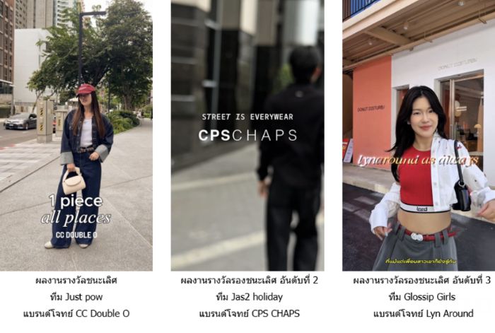 โดย นางสาวชนกานต์ โสดา นักศึกษาจากคณะวารสารศาสตร์และสื่อสารมวลชน มหาวิทยาลัยธรรมศาสตร์ ตัวแทนจากทีม Just pow ที่ได้รับรางวัลชนะเลิศ เผยว่า “กิจกรรมนี้มีเนื้อหาสอดคล้องกับรายวิชาที่เรียน จึงอยากลองนำเอาความรู้ที่ได้เรียนมามาลองสร้างเป็นผลงานจริงเพื่อแข่งขัน โดยโจทย์ที่ได้รับคือ แบรนด์ CC Double O จึงอยากทำคอนเทนต์ออกมาให้มีความ Casual ไม่หวือหวาจนเกินไป ดูสบายๆ เหมือนเพื่อนคุยกับเพื่อน เพื่อสื่อสารไปยัง Gen Z จึงเลือกใช้คอนเซปต์ 1 piece, all places ด้วยกางเกงยีนส์ที่คิดว่าทุกคนต้องมีติดบ้านมาเป็นไอเทมหลักในการแมตช์ให้ลุคดูทำตามได้จริง”