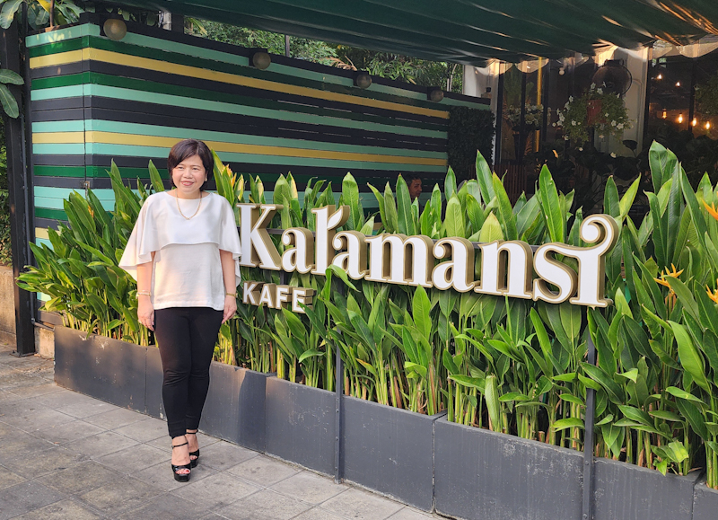 “ชื่อร้าน Kalamansi Kafe มาจาก Kalamansi (คาลามันซิ) หรือส้มจี๊ด อันเป็นวัตถุดิบหลักในการปรุงอาหารทุกชนิด เช่นเดียวกับมะนาวของไทยค่ะ” คุณแซนดี้กล่าว พร้อมเล่าให้ฟังว่า “ดีใจที่ร้านประสบความสำเร็จเกินคาด เพราะเปิดร้านนี้ขึ้นมาโดยคาดหวังเพียงให้เป็นสถานที่นัดพบปะเพื่อนๆ เพื่อทานอาหารร่วมกัน ในวัฒนธรรมของฟิลิปปินส์เราจะมีการรวมตัวเพื่อทานอาหารร่วมกันกับครอบครัว กับญาติ หรือกลุ่มเพื่อนๆ เป็นกลุ่มใหญ่ทุกวันหยุดสุดสัปดาห์ค่ะ”