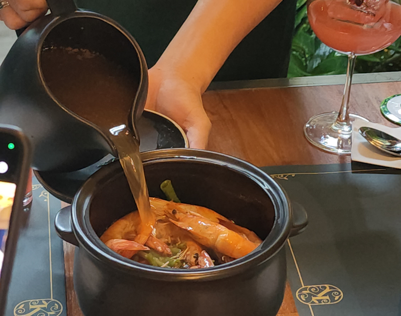 ตามด้วย Shrimp Tamarind Soup ซุปกุ้งน้ำมะขาม ที่มีรูปลักษณ์คล้ายต้มยำ หรือต้มส้มของไทย ส่วนรสชาตินั้นคล้ายแกงส้มแต่ไม่เผ็ด