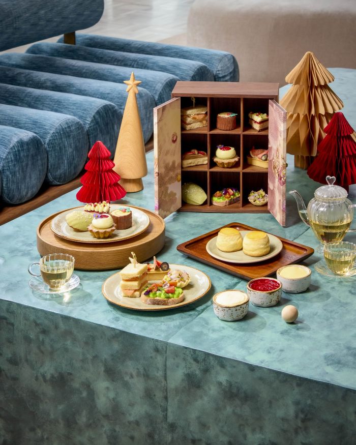 Sky Garden Afternoon Tea ประกอบด้วยชาออร์แกนิกจากอรักษ (Araksa) อำเภอแม่แตง จังหวัดเชียงใหม่ หนึ่งในไร่ชาที่เก่าแก่ที่สุดในประเทศไทย ซึ่งยังคงสืบสานวิถีการผลิตแบบดั้งเดิมและเกษตรยั่งยืน เสิร์ฟคู่กับขนมหวานและของว่างเก้าชนิด อาทิ ฟัวกราส์เอแคลร์ทาร์ตกับเบอร์รี่ อะโวคาโดทาร์ตหน้ากุ้งตะไคร้และพริกสด มัทฉะฟินองเซียกับแยมราสป์เบอร์รี่ เค้กแครนเบอร์รี่ และสโคนสูตรคลาสสิก รับประทานคู่เนยสดจากฝรั่งเศส มาสคาร์โปนที่ตีจนขึ้นฟู และแยมส้มโฮมเมด