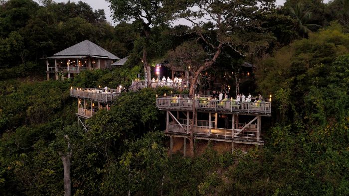 ก่อนมุ่งหน้าสู่ท่าเรือโอเชี่ยนฟร้อนท์ เพื่อเดินทางต่อไปยังหมุดหมายของทริปนี้อย่าง Soneva Kiri เกาะกูด รีสอร์ตหรูระดับ 6 ดาว ที่ให้ทุกคนได้รู้สึกเป็นหนึ่งเดียวกับธรรมชาติ ก่อนปิดท้ายค่ำคืนแรกด้วยอาหารไทยต้นตำรับกับครัวแม่ตุ๊ก ที่ตั้งอยู่ริมป่าโกงกาง ซึ่งนอกจากบรรยากาศจะโอบล้อมด้วยธรรมชาติที่สมบูรณ์แล้ว คอนเซปต์ของที่นี่ยังน่าสนใจไม่แพ้กัน โดยเน้นบอกเล่าความโลคอลผ่านอาหาร ที่สำคัญคือไม่มีใครสามารถคาดเดาเมนูอาหารได้เลย