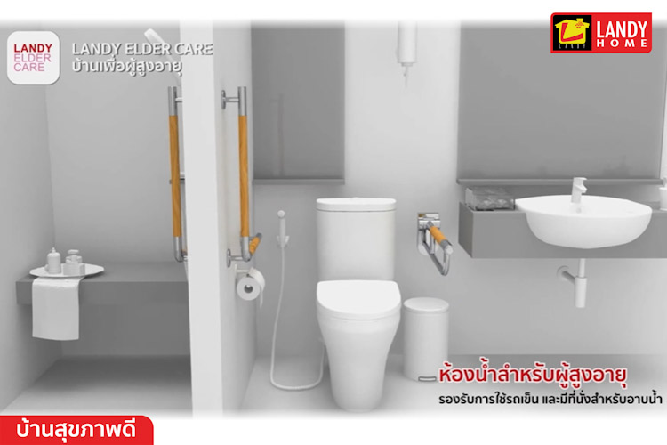 Landy Eldercare นวัตกรรมเพื่อผู้สูงอายุ โดยปัจจุบันประเทศไทยกำลังก้าวเข้าสู่สังคมผู้สูงอายุอย่างเต็มตัว บ้านในยุคปัจจุบัน จึงควรเน้นการออกแบบฟังก์ชันที่ช่วยป้องกันและลดอุบัติเหตุแก่สมาชิกผู้สูงอายุในครอบครัวได้ด้วยเช่นกัน แลนดี้ โฮม เน้นออกแบบและก่อสร้างบ้านที่อยู่สบายและเป็นพื้นที่ปลอดภัยสำหรับทุกคน โดยนอกจากออกแบบและจัดวางฟังก์ชันภายในบ้านที่เหมาะสมแล้ว ยังคัดสรรวัสดุและสุขภัณฑ์ชนิดพิเศษคุณภาพสูง ทำให้รองรับความต้องการของผู้สูงอายุที่มีปัญหาสุขภาพหรือมีความจำเป็นต้องใช้ Wheelchair ได้ จึงช่วยอำนวยความสะดวกสบายในการใช้ชีวิตในทุกวันแก่ผู้สูงอายุได้ดียิ่งขึ้น