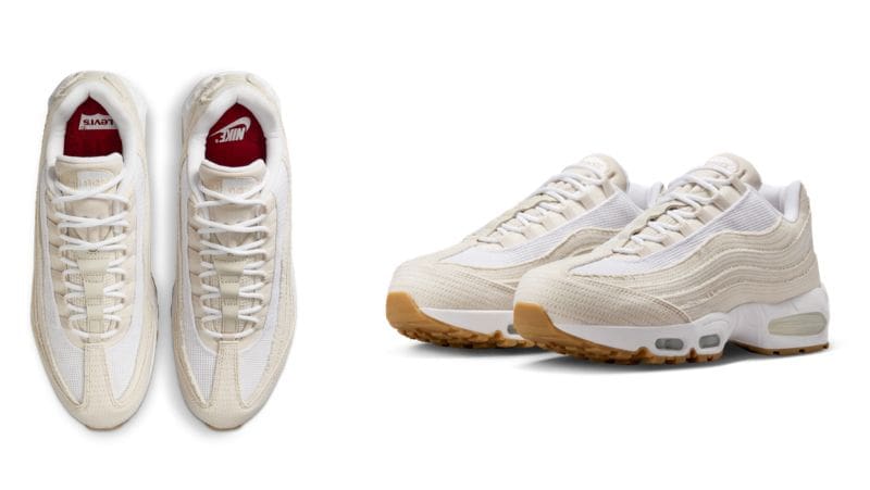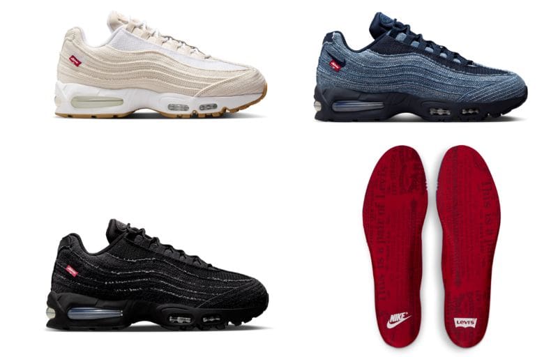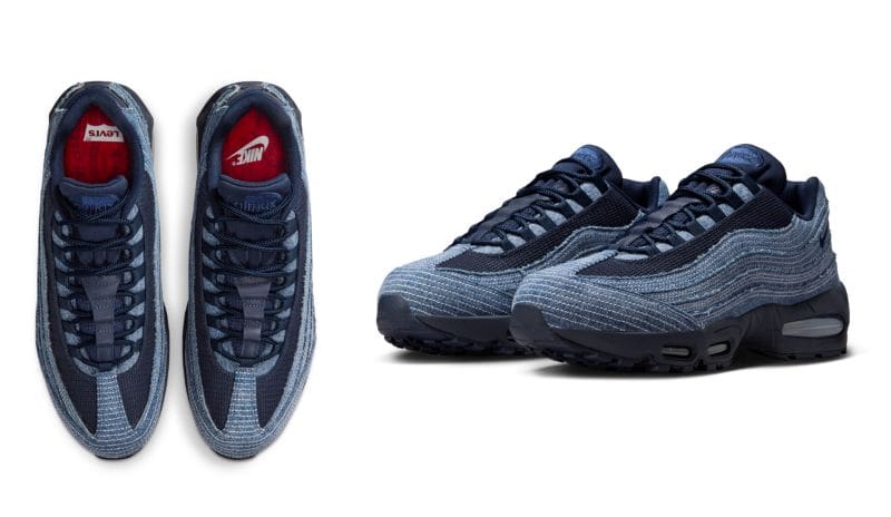 จุดเด่นของคอลเลกชันนี้คือ Nike Air Max 95 ทั้ง 3 สี ซึ่งได้รับการออกแบบอย่างพิถีพิถันโดยใช้ผ้ายีนส์ระดับพรีเมียมของ Levi’s® พร้อมรายละเอียดเฉพาะตัวที่สะท้อนดีเอ็นเอของทั้งสองแบรนด์ได้อย่างชัดเจน