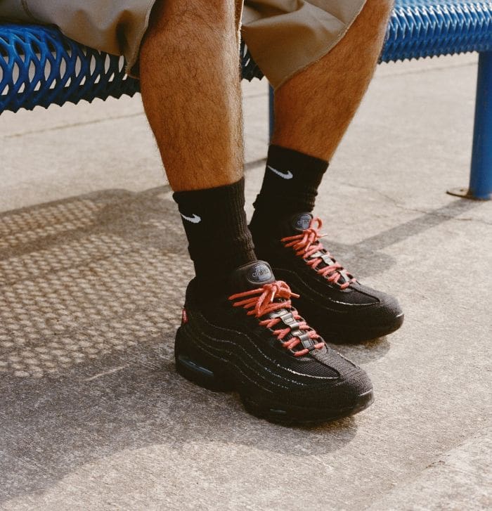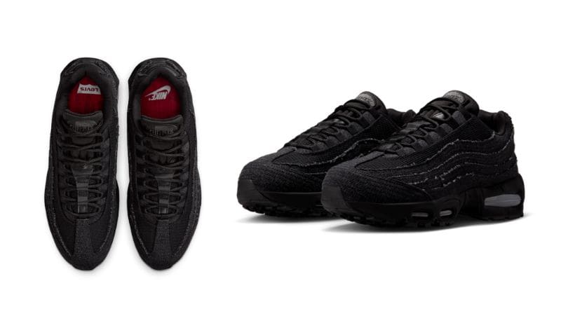 Levi’s® x Nike Air Max 95 Black ใช้ผ้ายีนส์สีดำหนา 14 ออนซ์ สะท้อนลุคเข้มเท่ในสไตล์โมโนโครมได้อย่างโดดเด่น
