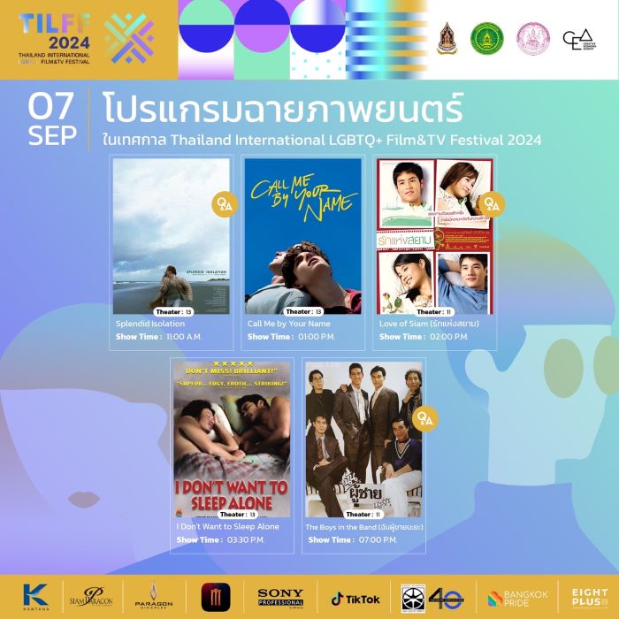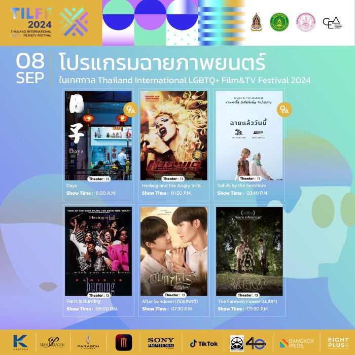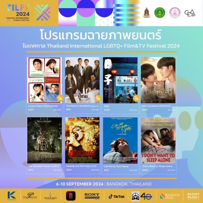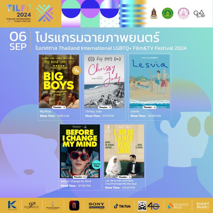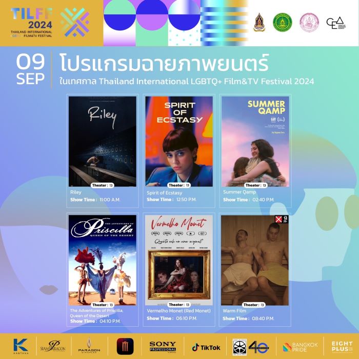 เตรียมสัมผัสประสบการณ์เทศกาลภาพยนตร์สุดยิ่งใหญ่ พร้อมร่วมเปล่งเสียงแห่งความภาคภูมิใจไปด้วยกกันที่งาน “THAILAND INTERNATIONAL LGBTQ+ FILM & TV FESTIVAL 2024” ตั้งแต่วันที่ 6 – 10 กันยายน 2567 ที่ พารากอนซีนีเพล็กซ์ ศูนย์การค้าสยามพารากอน ติดตามข้อมูลเพิ่มเติมและรายละเอียดการฉายภาพยนตร์ในแต่ละวันได้ที่ เฟสบุ๊ก TILFF คลิก https://www.facebook.com/tilff.official