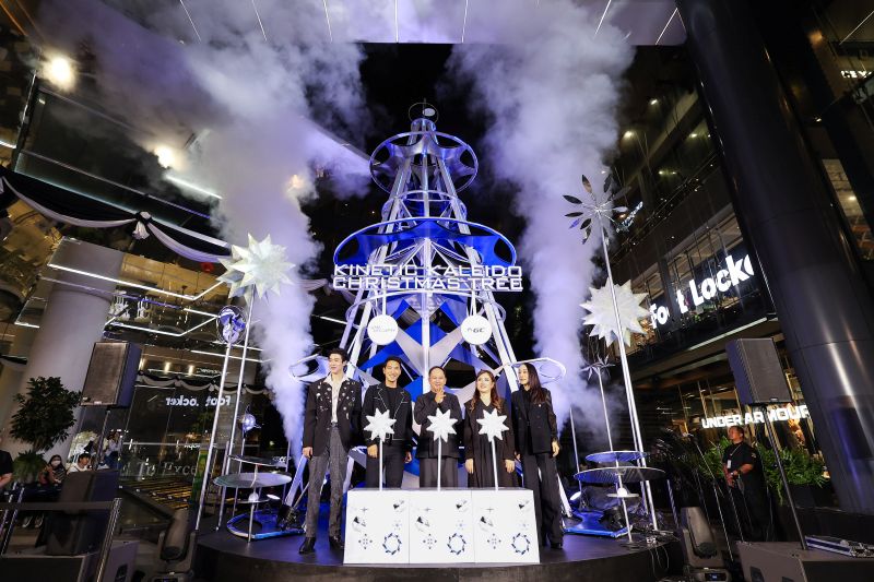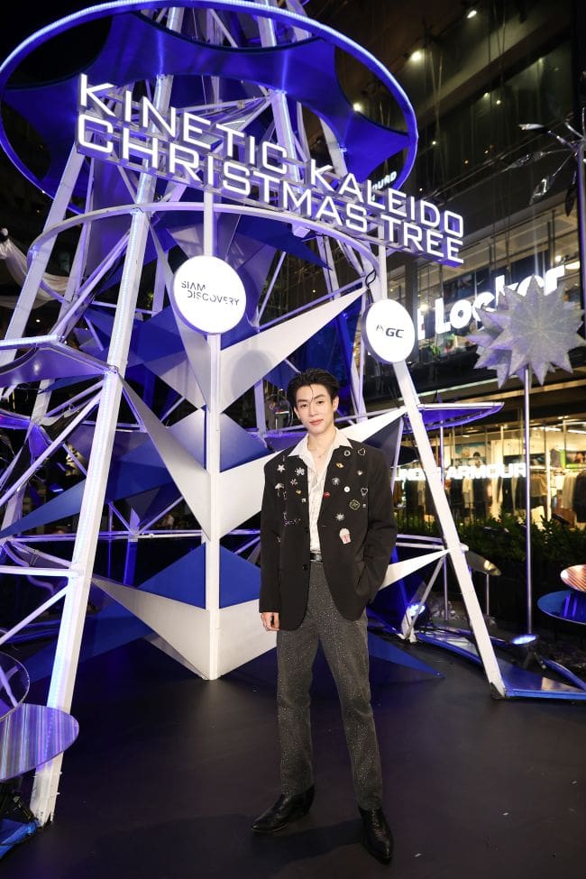 ต้นคริสต์มาสอัพไซเคิล “Kinetic Kaleido Christmas Tree” ดีไซน์ในคอนเซ็ปท์ The Cosmic Origami of Light โอริกามิแสงแห่งจักรวาลที่ถ่ายทอดความงดงามของศิลปะและเทคโนโลยีเข้าด้วยกัน ที่รังสรรค์ขึ้นจากโมดูลรูปทรงโอริกามิซ้อนต่อกันอย่างประณีต โครงสร้างสีเงินเมทัลลิก ส่องประกายด้วยเส้นแสง LED ไล่เฉดนีออนแบบกราเดียนต์ เผยลวดลายเรขาคณิตคล้ายภาพคาไลโดสโคปที่เคลื่อนไหวตามแรงลมอย่างมีชีวิต ก่อให้เกิดการเคลื่อนไหวที่สวยงามในทุกมุมมอง ผู้ชมสามารถเดินชมรอบต้นคริสต์มาสได้แบบ 360 องศา เพื่อสัมผัสประสบการณ์แห่งแสง สี และการเคลื่อนไหวอันดื่มด่ำราวกับหลุดเข้าไปในอวกาศของแสงแห่งศิลปะ