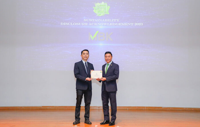 เอ็ม บี เค รับรางวัล Sustainability Disclosure Acknowledgement 2023 จากสถาบันไทยพัฒน์ ต่อเนื่อง 3 ปี