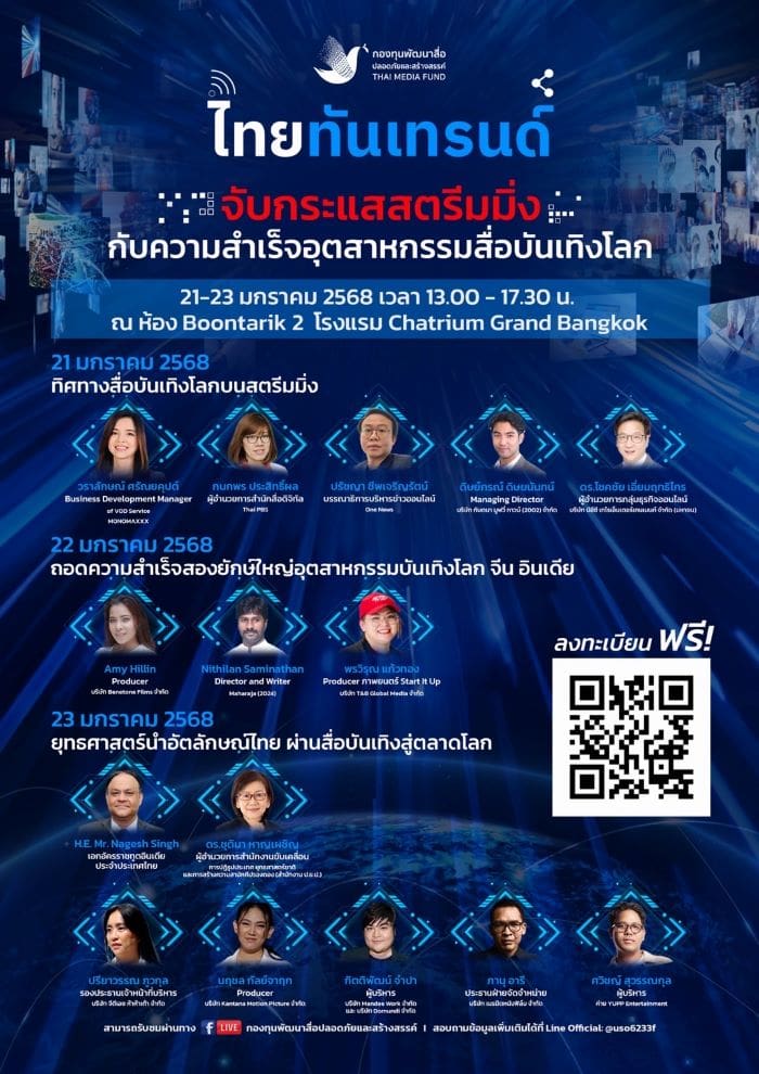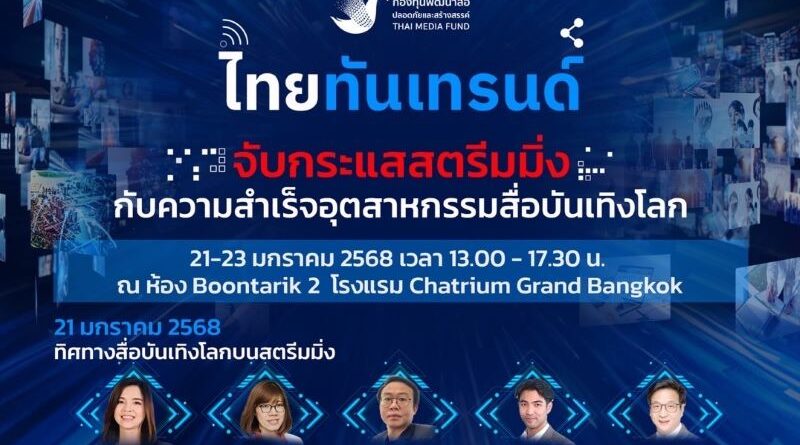 วันอังคารที่ 21 มกราคม 2568 จัดเสวนาในหัวข้อ “ทิศทางสื่อบันเทิงโลกบน Streaming”
