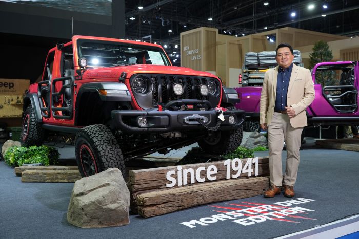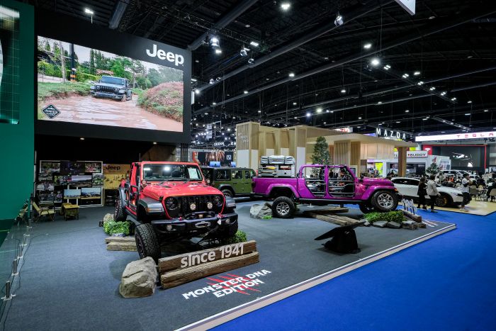 จี๊ป ประเทศไทย จัดแสดงยนตรกรรมไฮไลท์ภายใต้คอนเซปต์ ‘Monster Family’ กลาดิเอเตอร์ รูบิคอน มอนสเตอร์ เอดิชั่น มาพร้อมกับชุดแต่ง MOPAR รอบคัน ประกอบไปด้วย ชุดยก สมรรถนะสูง จาก MOPAR เพิ่มความสูงถึง 2นิ้ว กันชนหน้าเหล็กแบบชิ้นเดี่ยว พร้อมด้วยสปอตไลท์บริเวณเสาเอ และอุปกรณ์อำนวยความสะดวกด้านหลังครบครัน