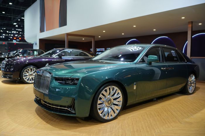 ขณะที่ยนตรกรรมไฮไลท์เป็นรุ่น โกสต์ ฐานล้อยาว (GHOST Extended) ที่สมบูรณ์แบบในทุกด้าน กับวิศวกรรมอันงดงามดุจงานศิลป์ ผ่านปรัชญาการออกแบบ Post Opulence ที่ดูเรียบง่าย หรูหรา แต่แฝงไปด้วยดีไซน์ที่ลงตัว ตัวถังสีเขียว (Imperial Jade) ตัดด้วยเส้นด้านข้าง (Coachline) สีขาว (Grace White) ที่ใช้การวาดด้วยมือ ซึ่งเป็นทักษะขั้นสูงอันเป็นเอกลักษณ์ นำเสนอรูปแบบใหม่ด้วยเส้นแนวตั้งที่โฉบเฉี่ยวมากยิ่งขึ้น มาพร้อมล้ออัลลอยขนาด 22 นิ้ว แบบ 9 Spoke Fully Polished และสัญลักษณ์นางฟ้า Spirit of Ecstacy ที่ไม่ได้ถูกล้อมกรอบบริเวณฐาน เพิ่มความโดดเด่นยิ่งขึ้น ดุจกำลังลอยอยู่กลางทะเลสาป