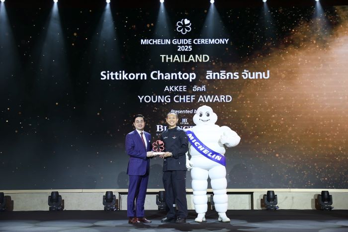 MICHELIN Guide Young Chef Award เป็นรางวัลพิเศษที่ได้รับการสนับสนุนโดย “บลองแปง” (Blancpain) แบรนด์นาฬิกาจากสวิตเซอร์แลนด์ รางวัลนี้มอบให้กับสุดยอดเชฟรุ่นใหม่ที่แสดงศักยภาพโดดเด่นตลอดระยะเวลา 12 เดือนที่ผ่านมา ด้วยคุณสมบัติและทักษะความสามารถในการรังสรรค์อาหารอันเป็นเอกลักษณ์เฉพาะตัว โดยผู้ได้รับรางวัลประจำปี 2568 คือ “อู๋” สิทธิกร จันทป เชฟและเจ้าของร้านอัคคี ด้วยความหลงใหลในอาหารไทยแบบดั้งเดิม เชฟอู๋เลือกใช้วัตถุดิบหายากมาปรุงอาหารและจัดจานอย่างสวยงาม สะท้อนทักษะความเชี่ยวชาญ เอกลักษณ์เฉพาะตัว และผสานความทันสมัยเอาไว้อย่างลงตัว ซึ่งผู้ตรวจสอบของ ‘มิชลิน ไกด์’ ชื่นชมและรอดูการนำอาหารไทยต้นตำรับ ไปสู่มิติใหม่ ๆ ในอนาคต