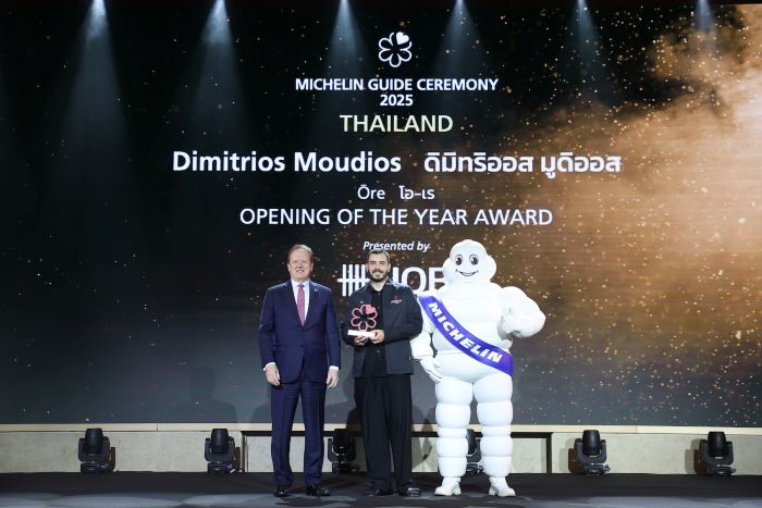 MICHELIN Guide Opening of the Year Award เป็นรางวัลที่ได้รับการสนับสนุนโดยธนาคารยูโอบี (UOB) มอบให้กับบุคลากรและทีมงานซึ่งประสบความสำเร็จในการเปิดร้านอาหารใหม่ในช่วง 12 เดือนที่ผ่านมา โดยมีแนวคิดที่โดดเด่นในการนำเสนออาหารอย่างสร้างสรรค์ จนกลายเป็นกระแสที่ได้รับความสนใจจากวงการอาหารในประเทศ สำหรับผู้ได้รับรางวัลประจำปี 2568 คือ ดิมิทริออส มูดิออส (Dimitrios Moudios) เชฟและเจ้าของร่วม (Co-Owner Chef) ของร้าน Ōre ร้านอาหารบรรยากาศสุดมินิมัลที่นำเสนอประสบการณ์การรับประทานอาหารที่น่าจดจำผ่านเมนูสร้างสรรค์ 30 คอร์ส ซึ่งประกอบด้วยวัตถุดิบหายากและวัตถุดิบที่ผ่านการหมัก รังสรรค์ด้วยเทคนิคการปรุงอาหารหลากหลายรูปแบบเพื่อให้ได้รสชาติที่มีเอกลักษณ์โดดเด่นเฉพาะตัว