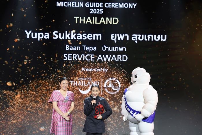 MICHELIN Guide Service Award เป็นรางวัลที่ได้รับการสนับสนุนโดยการท่องเที่ยวแห่งประเทศไทย มอบให้สุดยอดบุคลากรของร้านอาหารที่ทุ่มเทให้กับการบริการเพื่อให้ลูกค้าได้สัมผัสประสบการณ์การทานอาหารที่ยอดเยี่ยม สำหรับผู้ได้รับรางวัลประจำปี 2568 คือ ยุพา สุขเกษม ผู้จัดการร้านบ้านเทพา ด้วยประสบการณ์ที่สั่งสมมานานถึง 6 ปี จากการทำงานในอุตสาหกรรมอาหารและเครื่องดื่ม คุณยุพาให้บริการอย่างมืออาชีพด้วยความใส่ใจ การให้บริการของเธอและทีมงานสร้างความประทับใจให้กับทีมผู้ตรวจสอบของ ‘มิชลิน ไกด์’ และทำให้การรับประทานอาหารเป็นประสบการณ์ที่น่าจดจำ