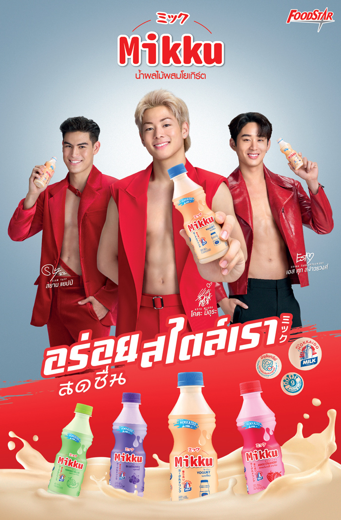 เปิดตัว 3 หนุ่มหล่อแถวหน้าแห่งวงการกีฬา โคตะ มิอุระ นักมวยเสน่ห์แรงสุดคิ้วท์จากญี่ปุ่น, ฉลามเอส ศุภ สง่าวรวงศ์ นักแสดงหนุ่มงานดีย์ ดีกรีนักกีฬาว่ายน้ำทีมชาติไทย และ สยาม แยปป์ นักเตะดาวรุ่งหนุ่มลูกครึ่งสุดเท่ จากบุรีรัมย์ ยูไนเต็ด ที่โคจรมาพบกันครั้งแรก เพื่อระเบิดพลังดูดี x 3 ไปกับ น้ำผลไม้ผสมโยเกิร์ต “มิกกุ” (MIKKU) ที่พร้อมอัพคุณภาพ ปรับสูตรใหม่ได้ฟีลดีสุดๆ กับการมิกนมฮอกไกโด พร้อมคุณประโยชน์อัดแน่นเต็มๆ ขวด แมตช์ใหญ่ครั้งนี้