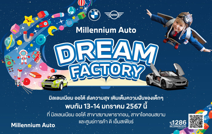 บริษัท มิลเลนเนียม ออโต๊ กรุ๊ป จำกัด ผู้จำหน่ายรถยนต์ บีเอ็มดับเบิลยู, มินิ และมอเตอร์ไซค์ บีเอ็มดับเบิลยู มอเตอร์ราด อย่างเป็นทางการ ภายใต้บริษัท มิลเลนเนียม กรุ๊ป คอร์ปอเรชั่น (เอเชีย) จำกัด (มหาชน) จัดกิจกรรมแสนสนุกต้อนรับวันเด็กแห่งชาติ ‘Millennium Auto Dream Factory’ เนรมิตรพื้นที่ใน 3 ศูนย์การค้าใจกลางเมือง ทั้ง ดิ เอ็มสเฟียร์, สยามพารากอน และไอคอนสยาม ให้เป็นโรงงานแห่งความสนุก หยิบยื่นความสุขให้กับน้องๆ ผ่านประสบการณ์สุดพิเศษ ควบคู่ไปกับการพัฒนาความรู้และความคิดสร้างสรรค์ ระหว่างวันที่ 13-14 มกราคมนี้ พร้อมเอาใจผู้ปกครองด้วยข้อเสนอสุดพิเศษตลอดเดือนมกราคม ที่โชว์รูม บีเอ็มดับเบิลยู มิลเลนเนียม ออโต้ และ มินิ มิลเลนเนียม ออโต้ ทุกสาขา