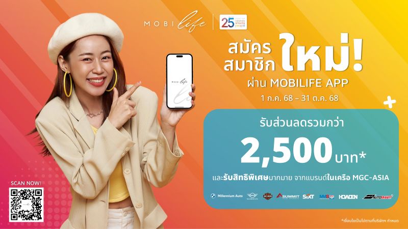 MOBILIFE (โมบิไลฟ์) ภายใต้บริษัท มิลเลนเนียม กรุ๊ป คอร์ปอเรชั่น (เอเชีย) จำกัด (มหาชน) หรือ MGC-ASIA ผู้นำธุรกิจไลฟ์สไตล์โมบิลิตี้ครบวงจร ฉลองโอกาสครบรอบ 25 ปี จัดหนักแคมเปญใหญ่ ‘MOBILIFE WELCOME PRIVILEGES’ และ ‘MOBILIFE BIRTHDAY PRIVILEGES’ มอบสิทธิพิเศษมากมาย ทั้งส่วนลด คูปอง ของขวัญ สำหรับลูกค้า ที่ใช้บริการจากหลากหลายแบรนด์ในเครือ วันนี้ ถึง 31 ธันวาคม 2568