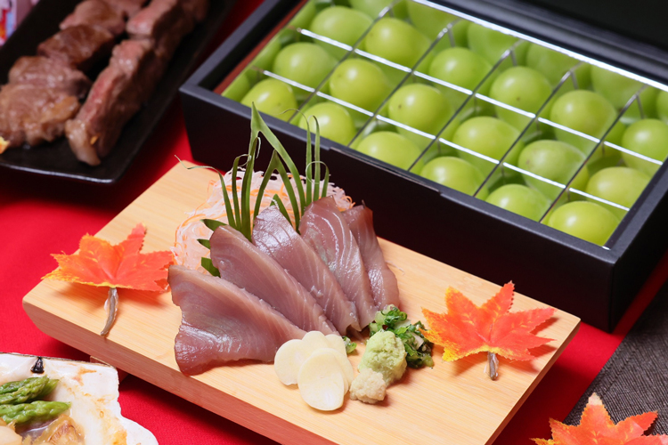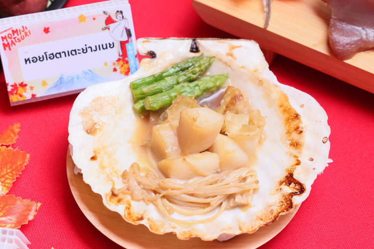 · ไดฟุกุองุ่นไชน์มัสคัต และองุ่นไชน์มัสคัตจากโอกายามะ องุ่น “ซังงะ ไชน์มัสคัต” เปรียบดั่งอัญมณีของโอกายามะอาณาจักรแห่งผลไม้ ส่งตรงมาจากสวน “SANGA FABRICANT” ในจังหวัดโอกายามะ ซึ่งให้ความสำคัญกับ “น้ำ” ที่องุ่นจะดูดเข้าไป โดยใช้เฉพาะน้ำธรรมชาติ จึงทำให้องุ่นมีจุดเด่นที่เปลือกตึงกรอบ และเนื้อชุ่มฉ่ำ มีรสหวานกลิ่นหอม ไม่มีเมล็ด เปลือกบางสามารถรับประทานได้ทั้งเปลือก และภายในงานยังมีเมนูพิเศษ คือ “ไดฟุกุ องุ่นไชน์มัสคัต” ขนมไดฟุกุที่เต็มไปด้วยรสชาติของฤดูใบไม้ร่วง ด้วยการคัดสรรองุ่นอย่างดี นำมาห่อด้วยแป้งโมจิเนื้อนุ่ม ผสมกับถั่วขาวบด เพื่อเน้นกลิ่นหอม และความหวานขององุ่น เป็นเมนูของหวานพิเศษประจำฤดูใบไม้ร่วง